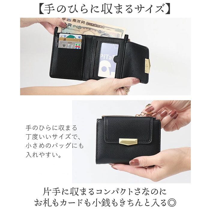 ・片手に収まるコンパクトさなのにお札もカードも小銭もきちんと入る◎