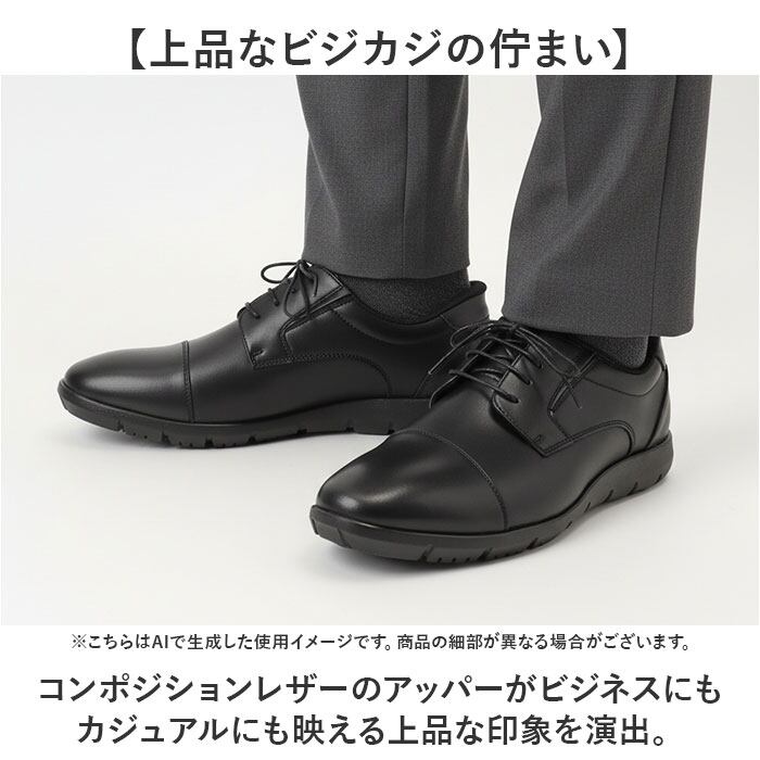 ・コンポジションレザーのアッパーがビジネスにもカジュアルにも映える上品な印象を演出。