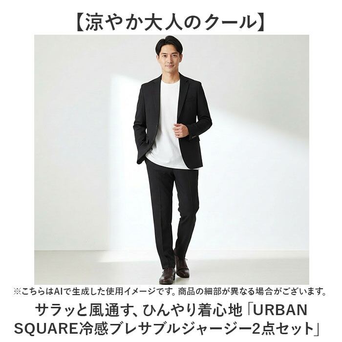 【涼やか大人のクール】サラッと風通す、ひんやり着心地「URBAN SQUARE冷感ブレサブルジャージー2点セット」