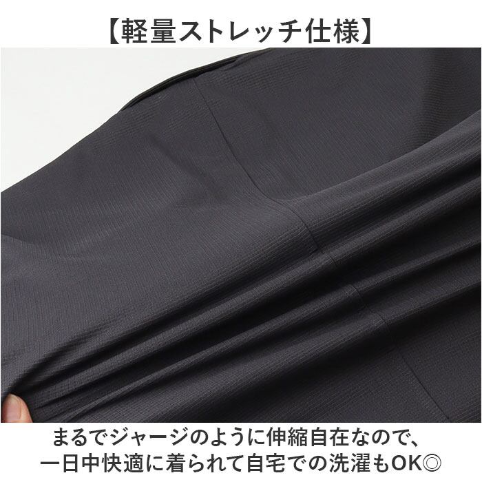 【軽量ストレッチ仕様】まるでジャージのように伸縮自在なので、一日中快適に着られて自宅での洗濯もOK◎