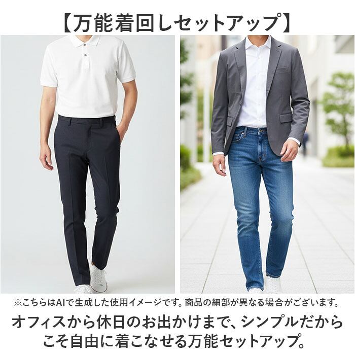【万能着回しセットアップ】オフィスから休日のお出かけまで、シンプルだからこそ自由に着こなせる万能セットアップ。