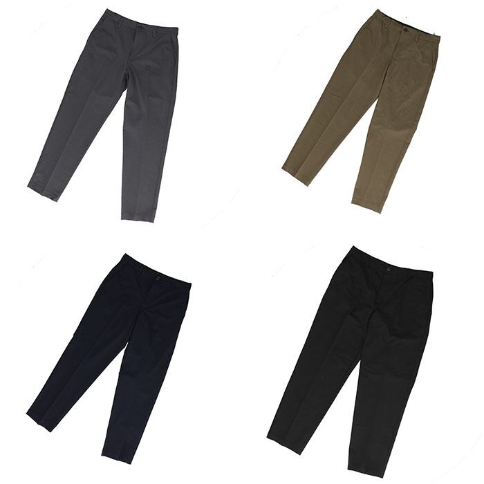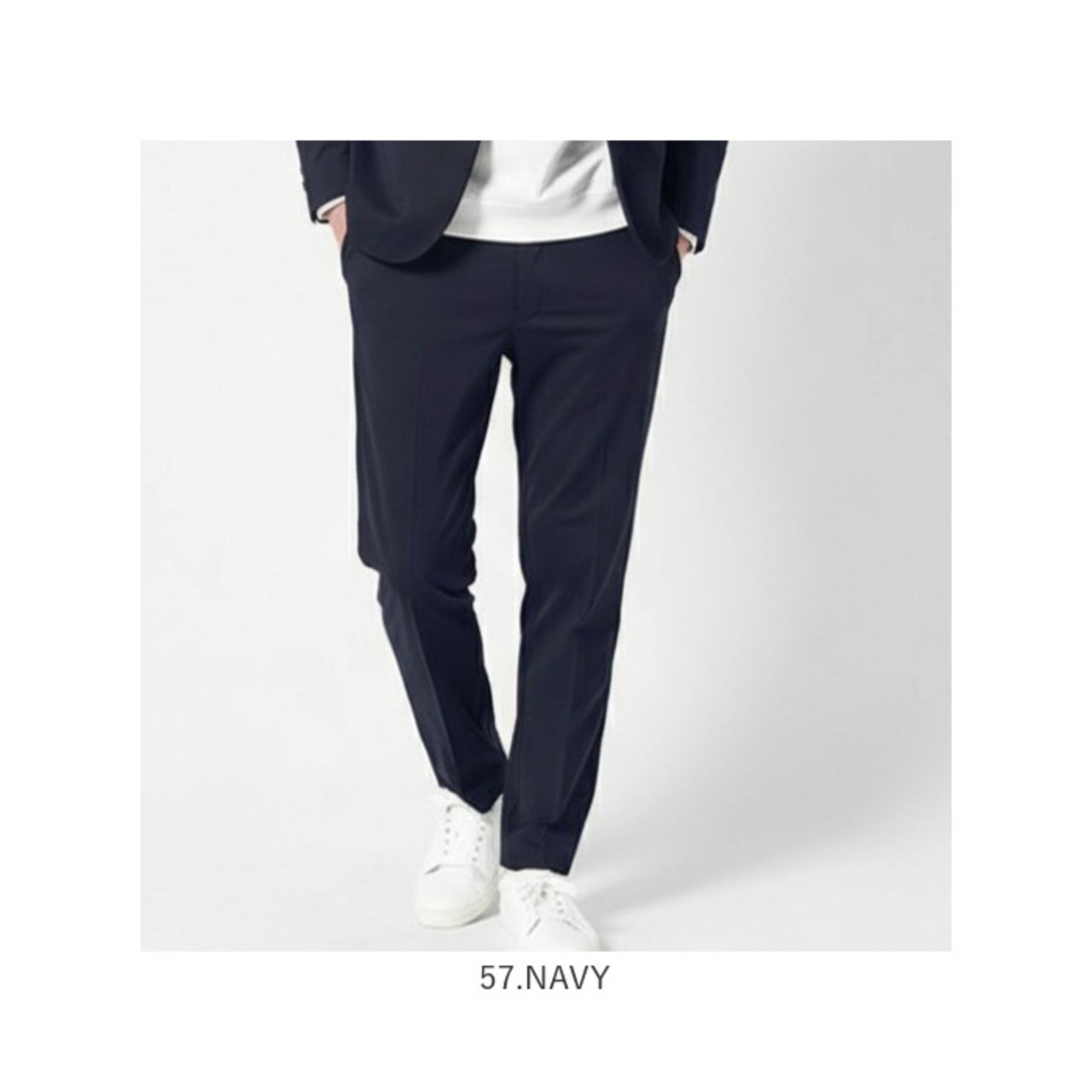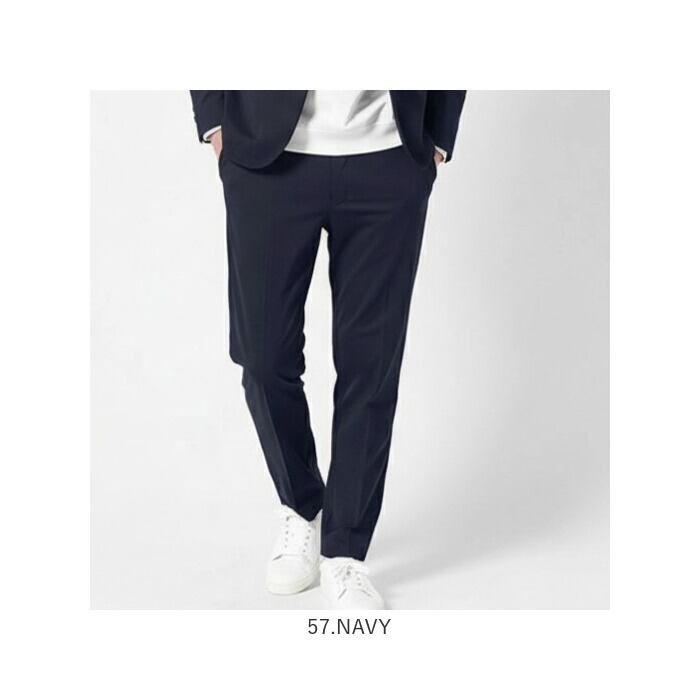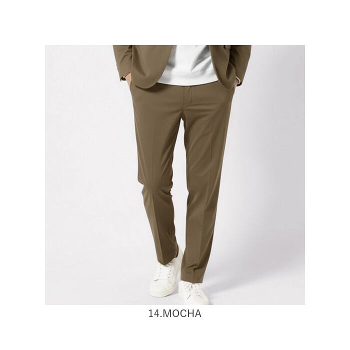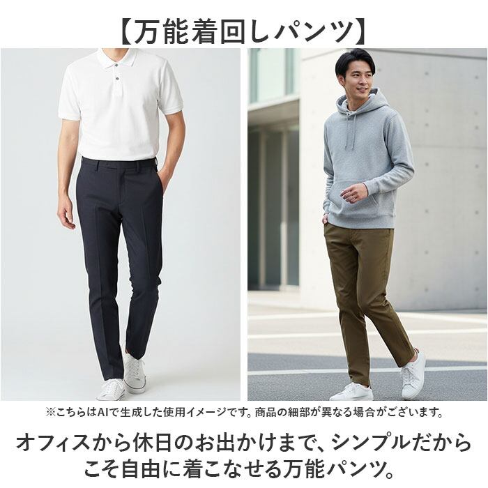 ・オフィスから休日のお出かけまで、シンプルだからこそ自由に着こなせる万能パンツ。