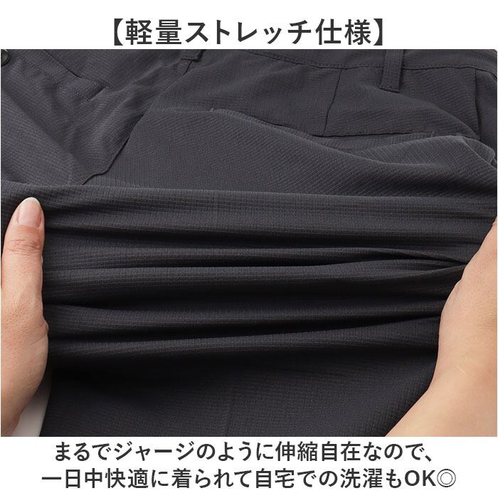 ・まるでジャージのように伸縮自在なので、一日中快適に着られて自宅での洗濯もOK◎