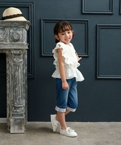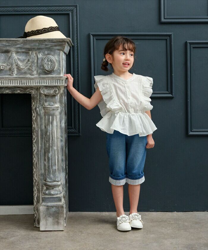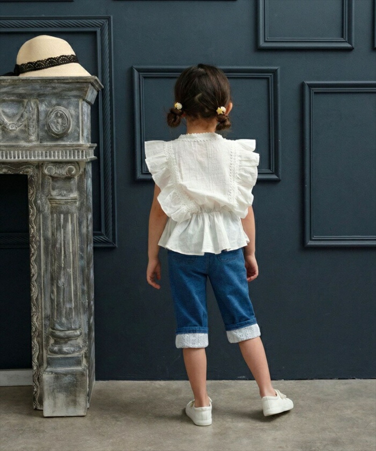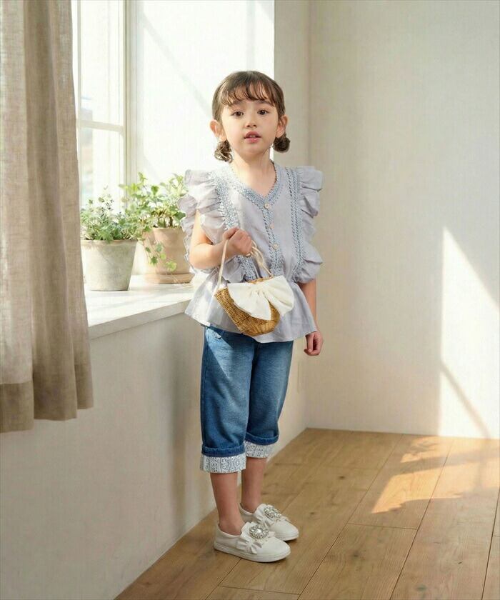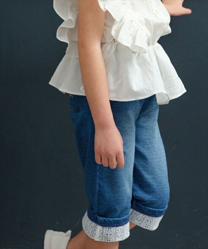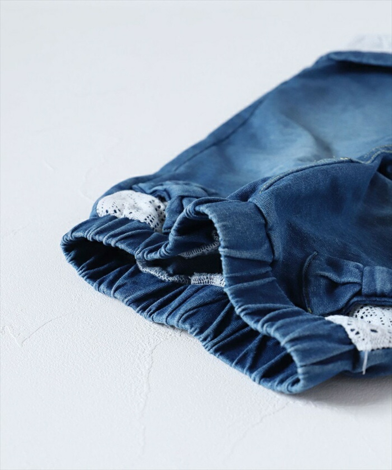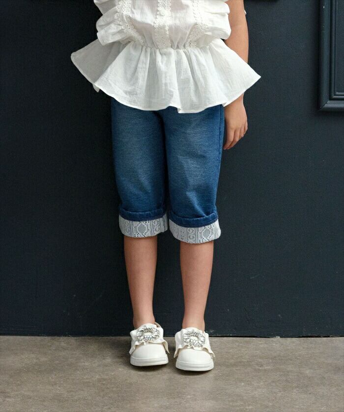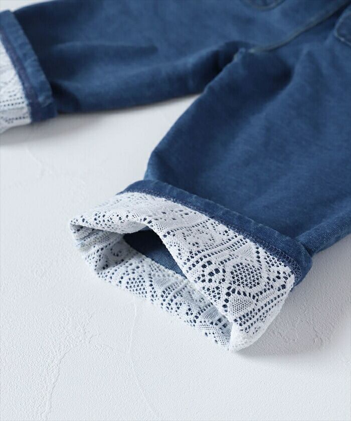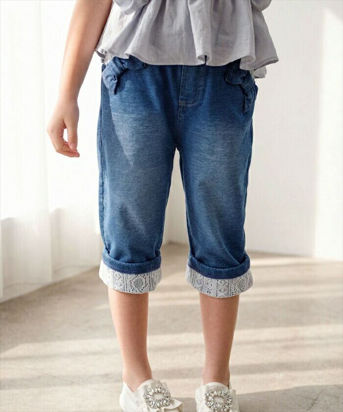 ・ロールアップされた裾に施されたレースがシンプルなデニムに華やかさを加え、可愛らしさと大人っぽさをバランスよく演出します。