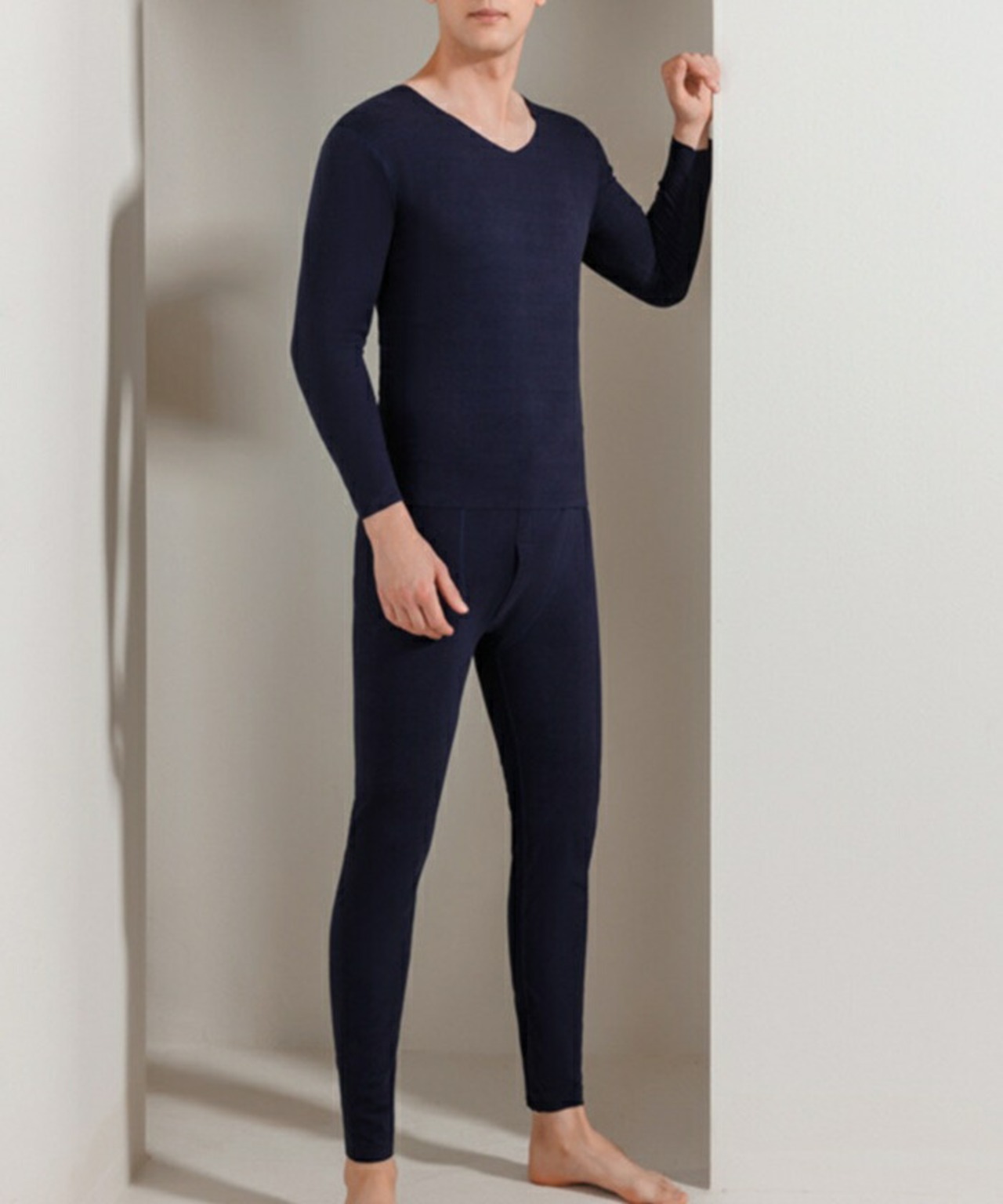 ・柔らかな着心地が魅力のメンズ長袖インナー上下セット。