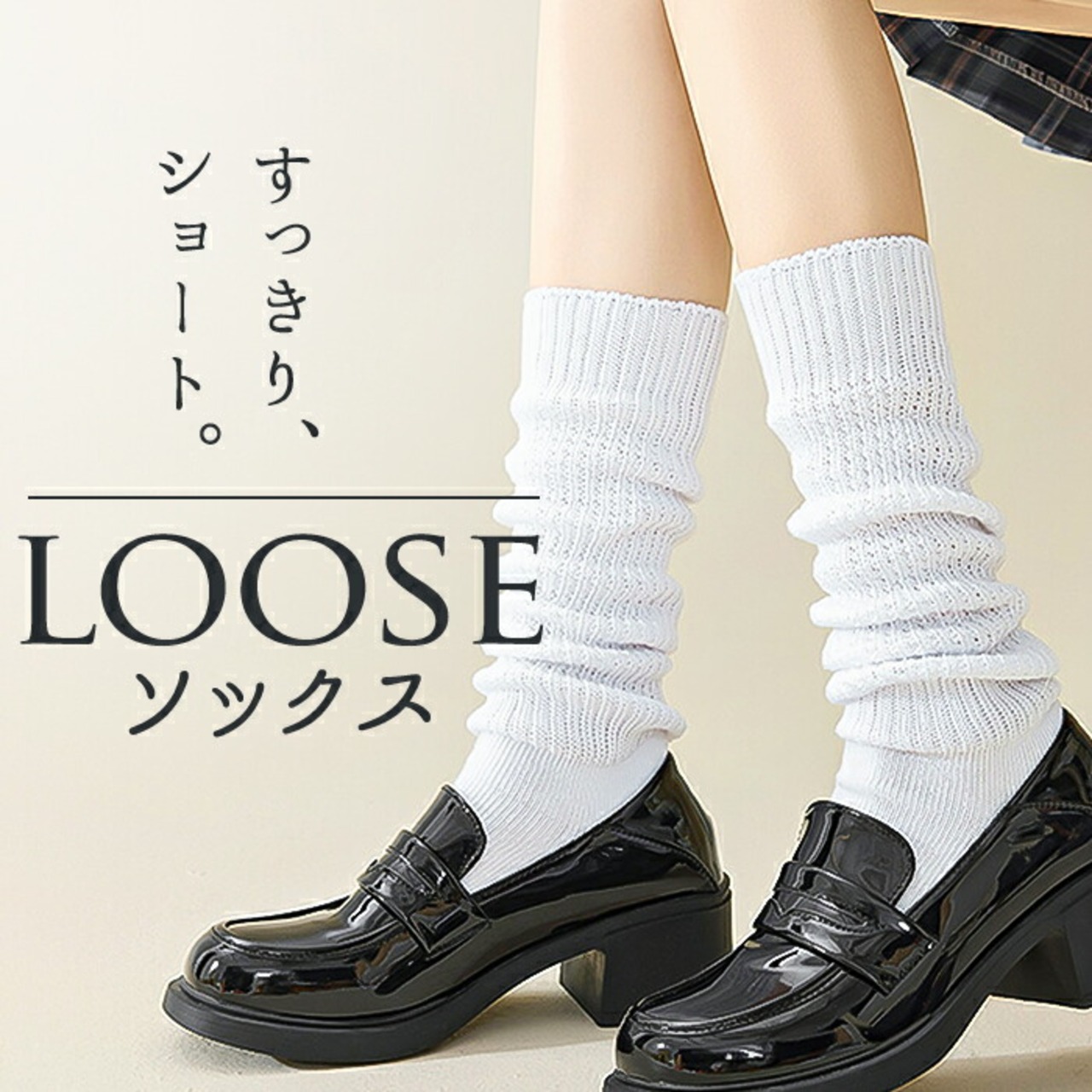 ・程よい丈感でレッグラインをきれいに見せるショート丈ルーズソックス。