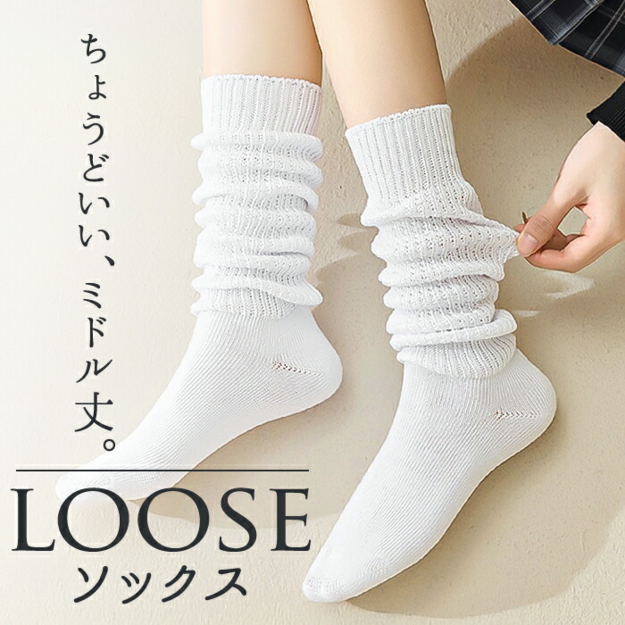 ・程よいボリューム感でくしゅっと感を楽しめるミドル丈のルーズソックス。