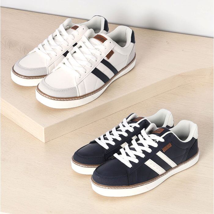・サイドの2本ラインとロゴ入りタグがさりげなくスタイルを格上げするデザイン。