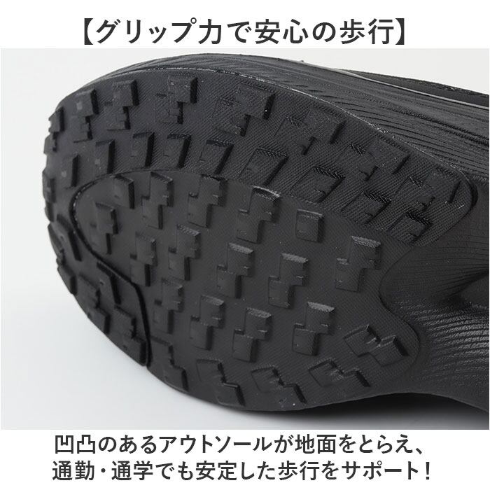 ・凹凸のあるアウトソールが地面をとらえ、通勤・通学でも安定した歩行をサポート!