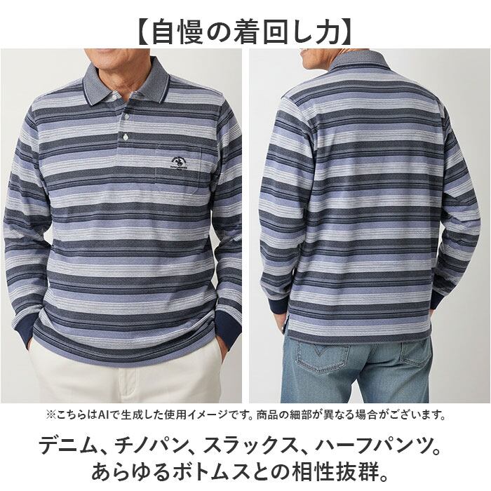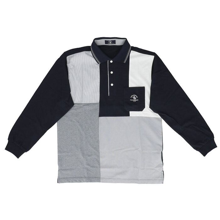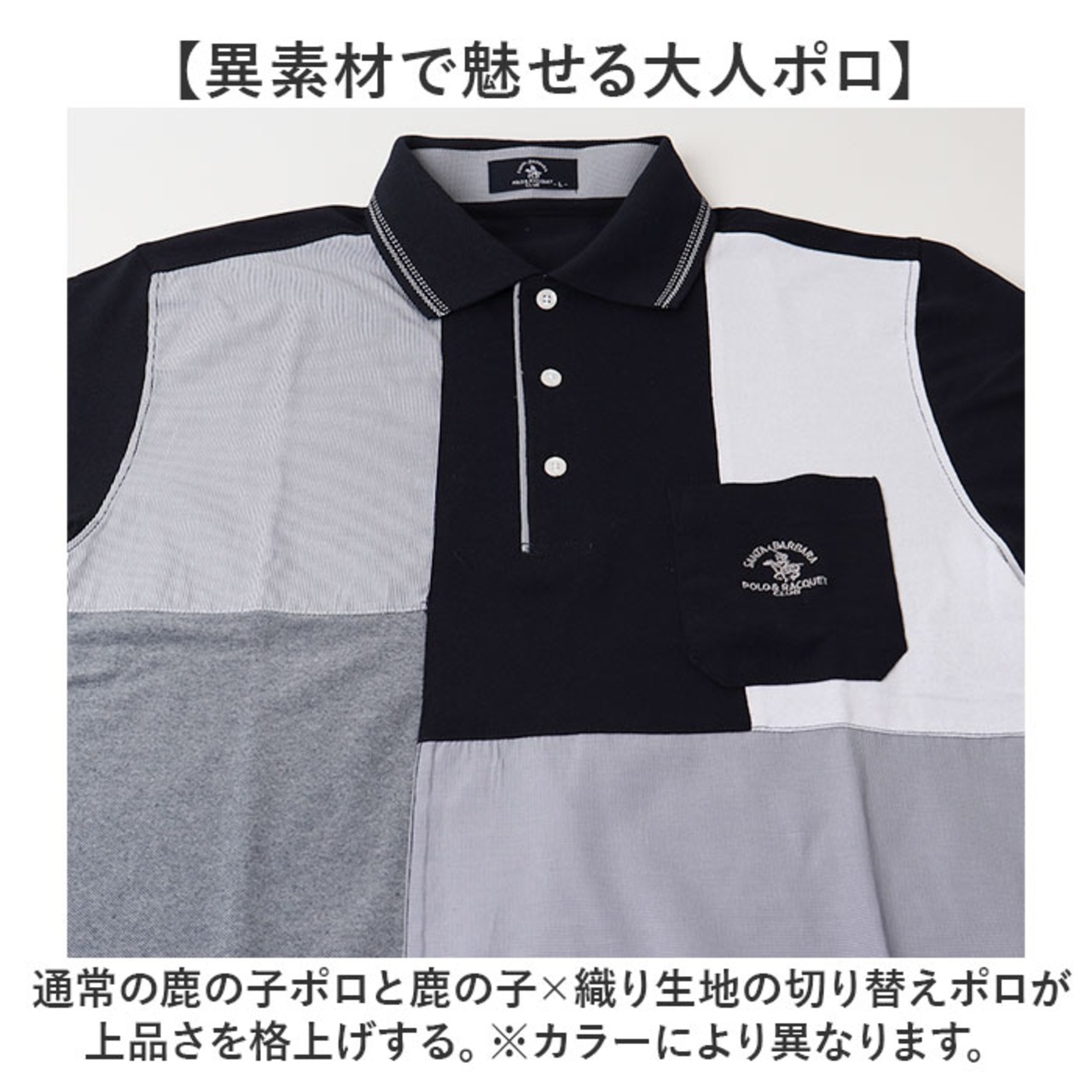 ・通常の鹿の子ポロと鹿の子×織り生地の切り替えポロが上品さを格上げする。※カラーにより異なります。