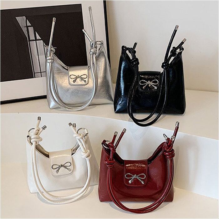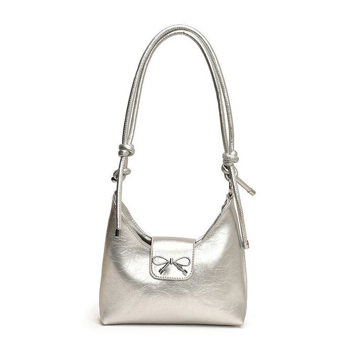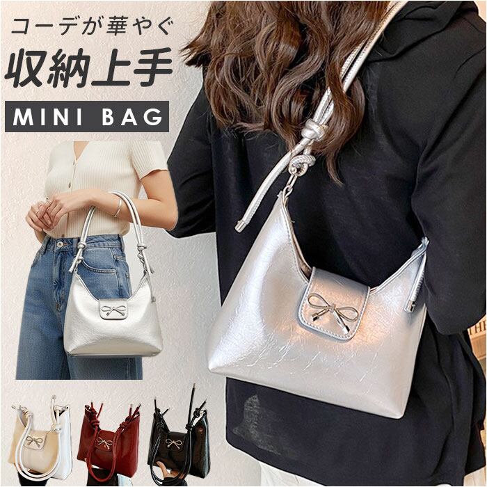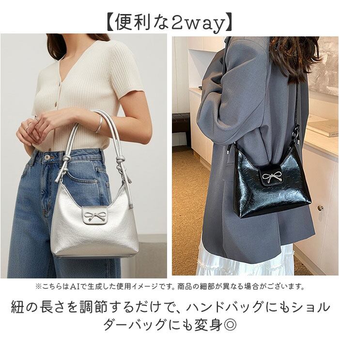 ・シルバーのリボンモチーフと2way仕様を兼ね備えた、毎日使いたくなるコンパクトバッグ♪