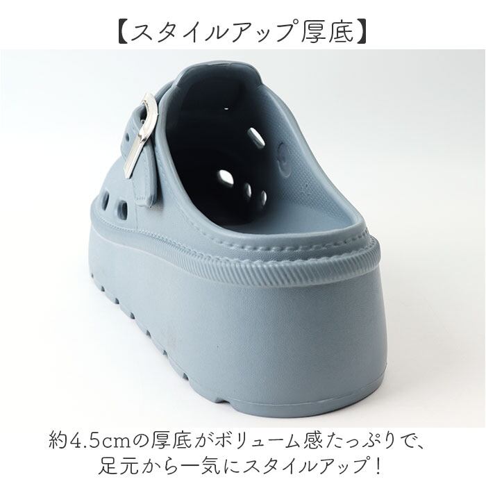 ・約4.5cm厚底×グミ足感のサボサンダル。軽くてふわふわ、スリッポンでサッと履ける◎
