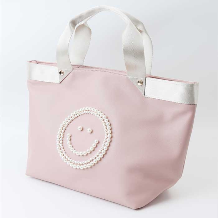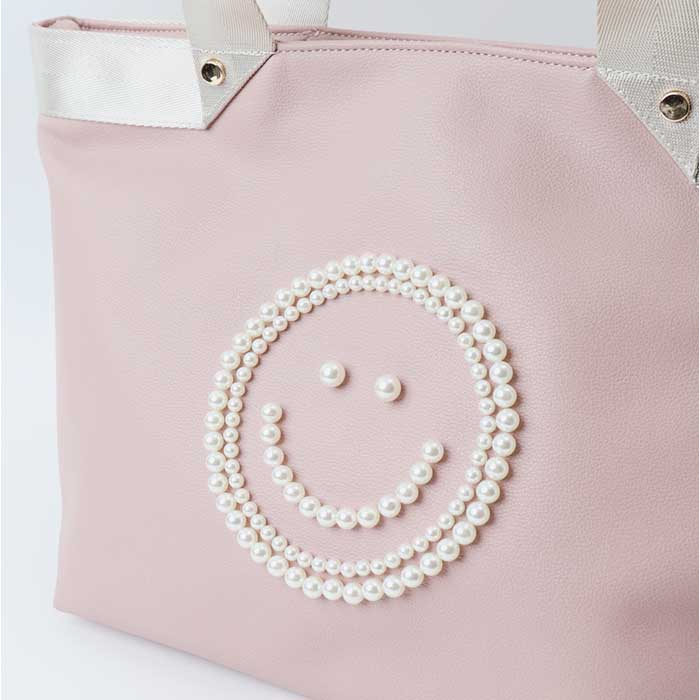 ・パールのニコちゃん刺繍×大容量設計で、通勤もおでかけも上品にこなせるトートバッグ♪