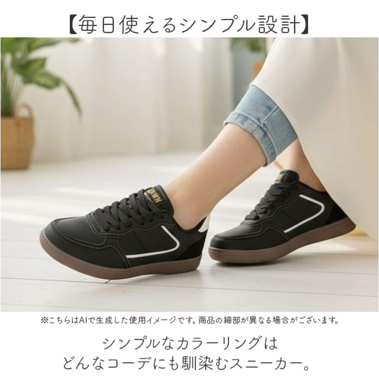 ・シンプルなカラーリングはどんなコーデにも馴染むスニーカー。