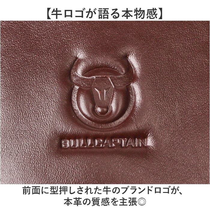 ・前面に型押しされた牛のブランドロゴが、本革の質感とともに持ち主のこだわりを静かに主張◎