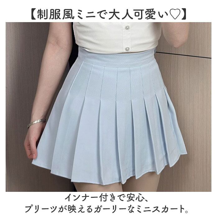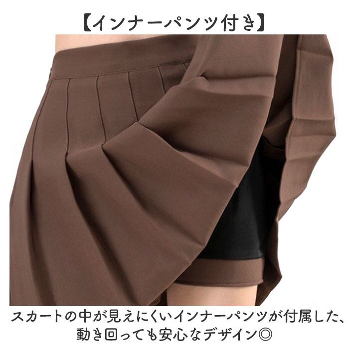 ・インナー付きで安心、プリーツが映えるガーリーなミニスカート。