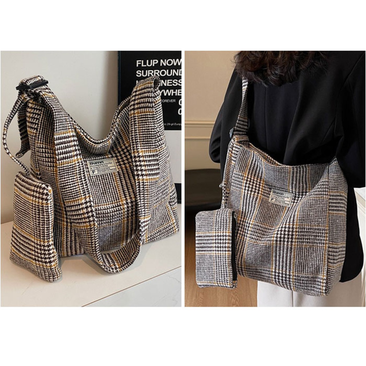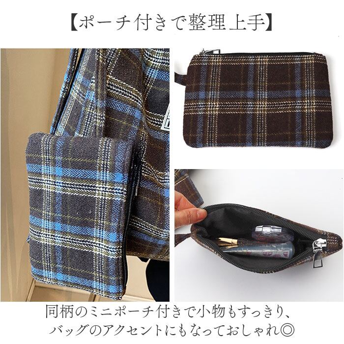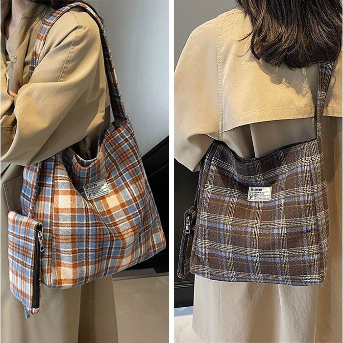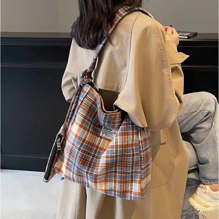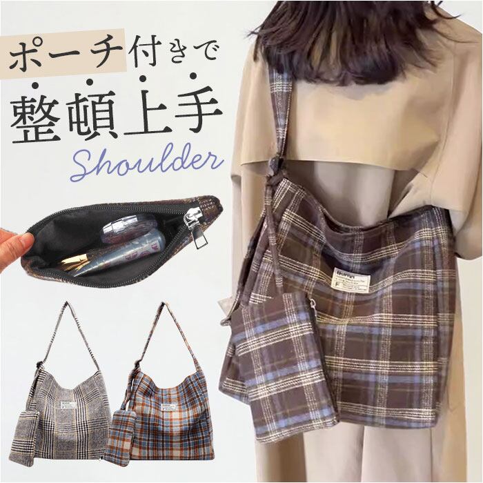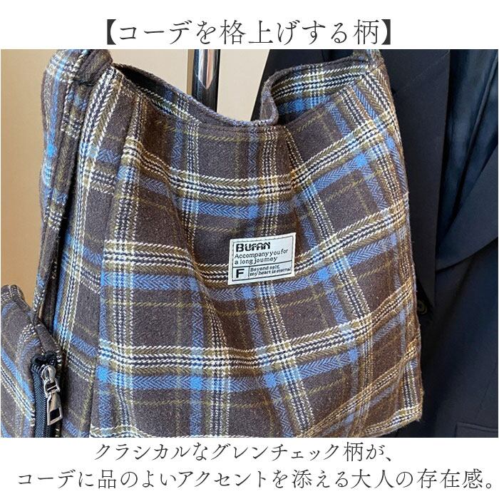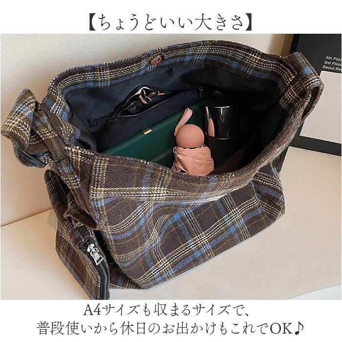 ・通勤も通学もこなせる、チェック柄の大人ショルダーバッグ。