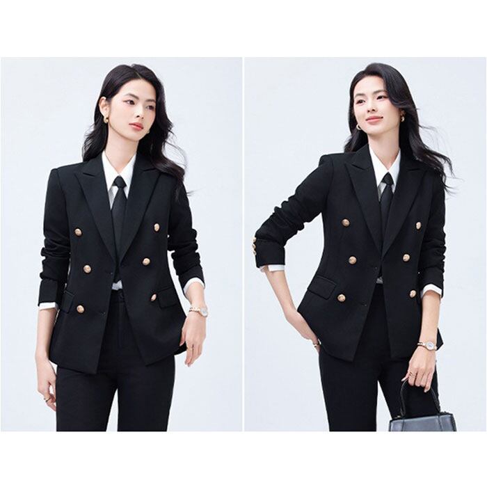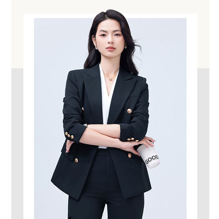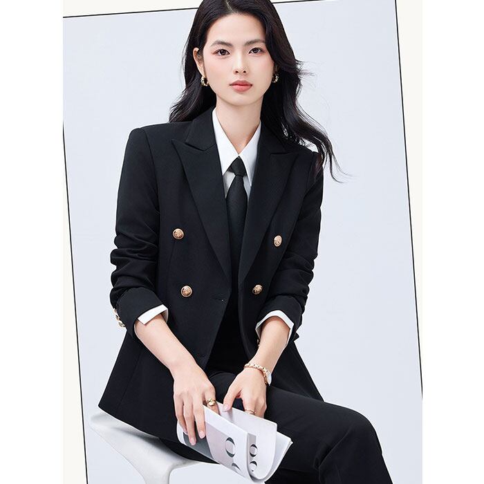 ・ダブルブレスト×テーラードシルエットが、メリハリのある洗練されたラインを引き立てる構造!