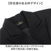 ・先端が上向きに尖ったピークドラペルが、知的で格式高い印象を演出。