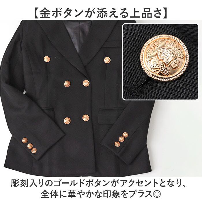 ・彫刻入りのゴールドボタンがアクセントとなり、全体に華やかな印象をプラス◎