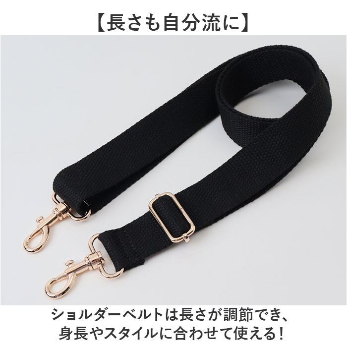 ・ショルダーベルトは約84〜149cmで調節でき、身長やスタイルに合わせて使える!