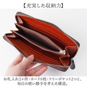 100年以上愛され続けるレザーの宝石と言われるコードバンを使用したラウンドファスナー長財布。