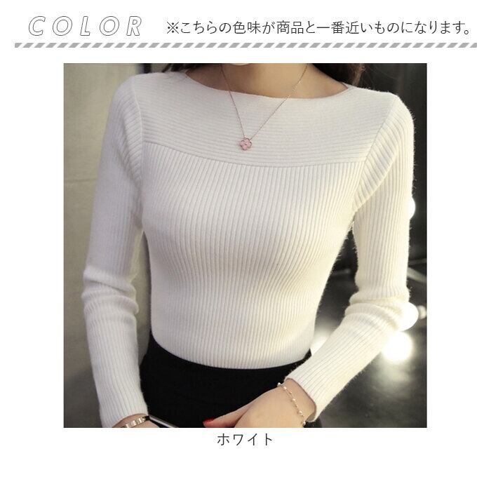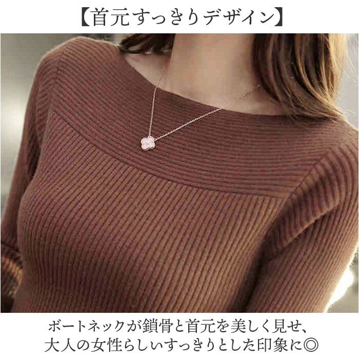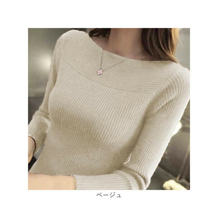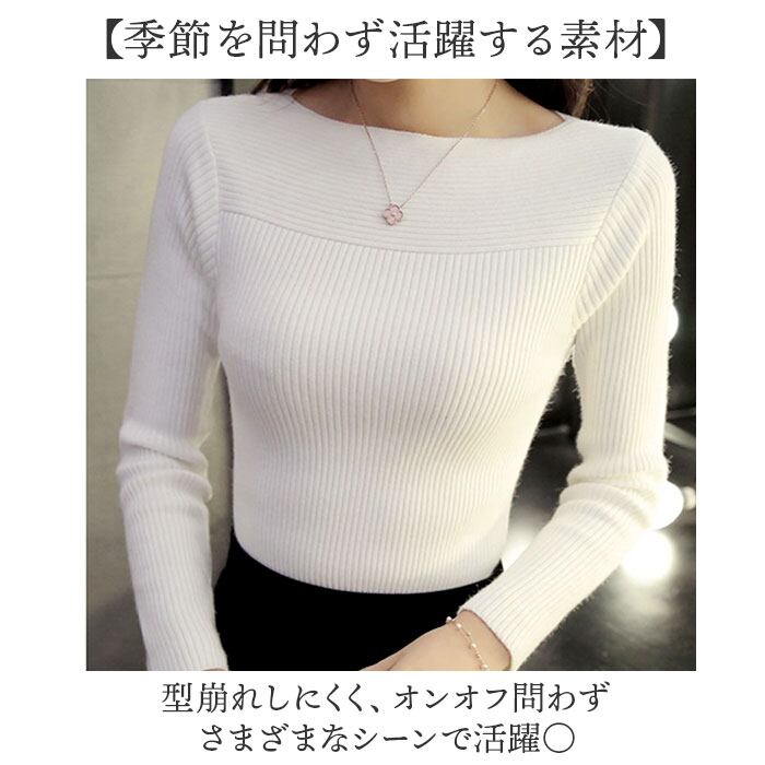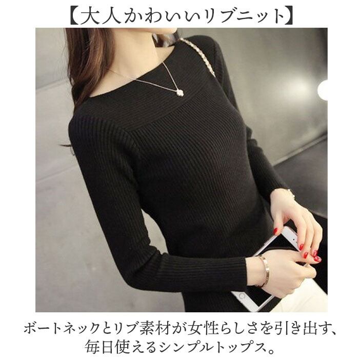 ・ボートネックとリブ素材が女性らしさを引き出す、毎日使えるシンプルトップス。