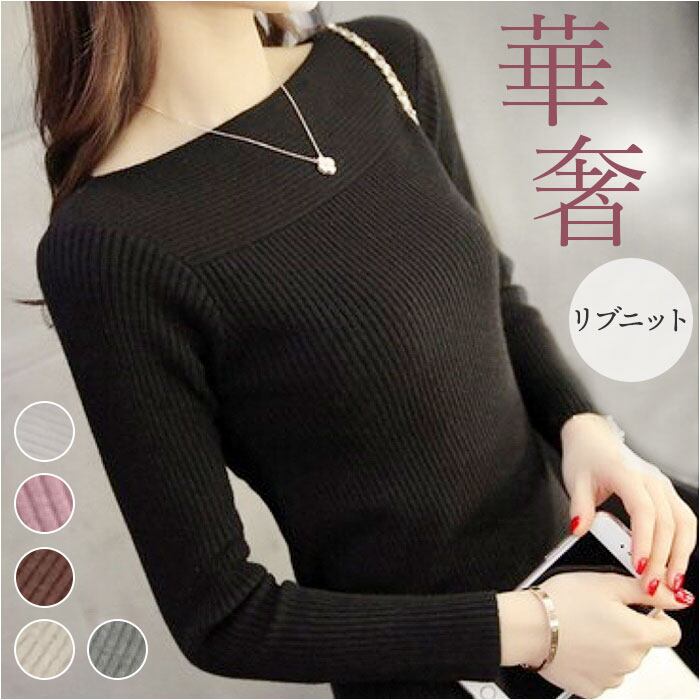 【大人かわいいリブニット】