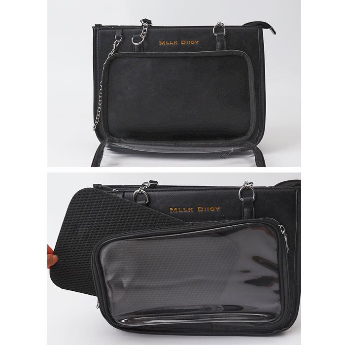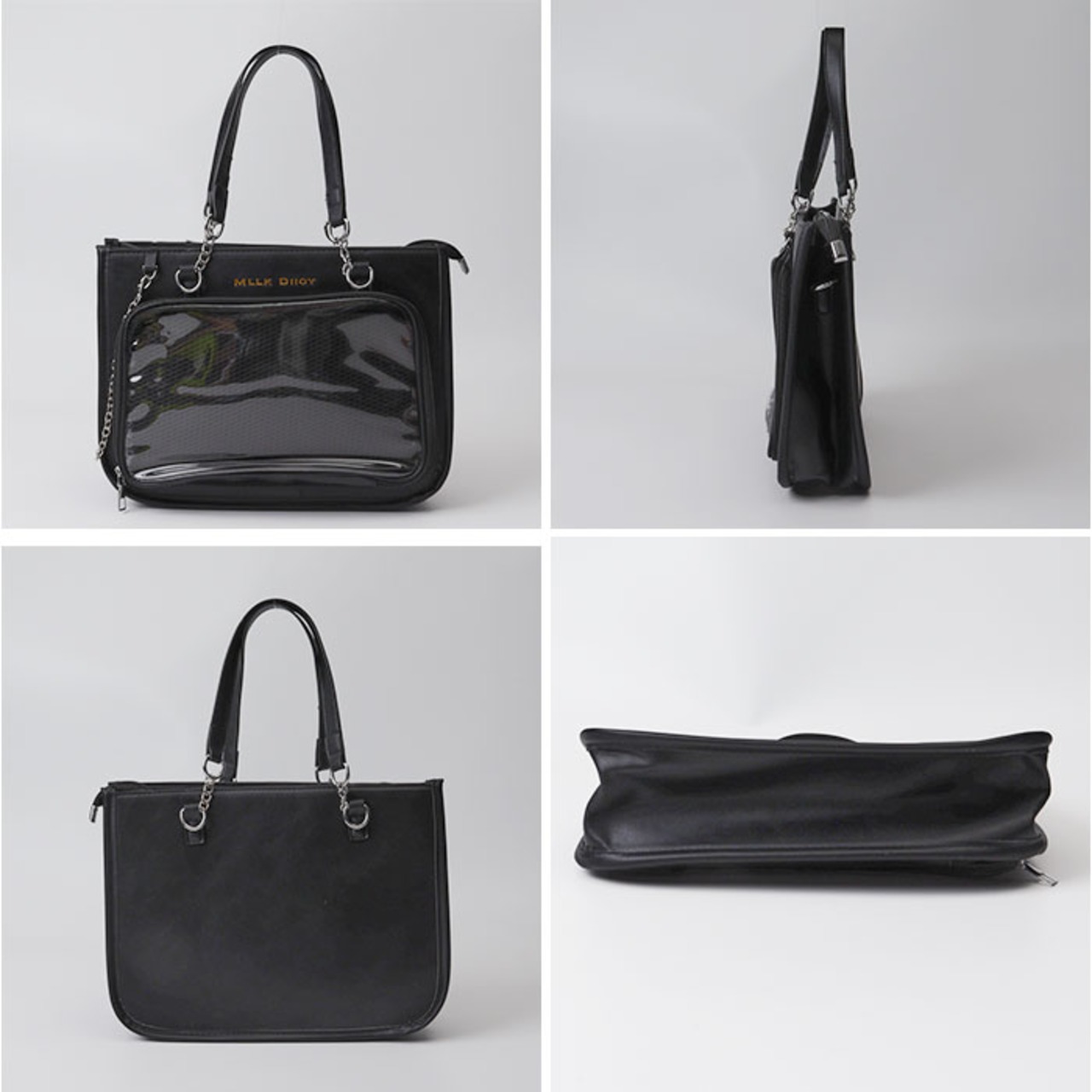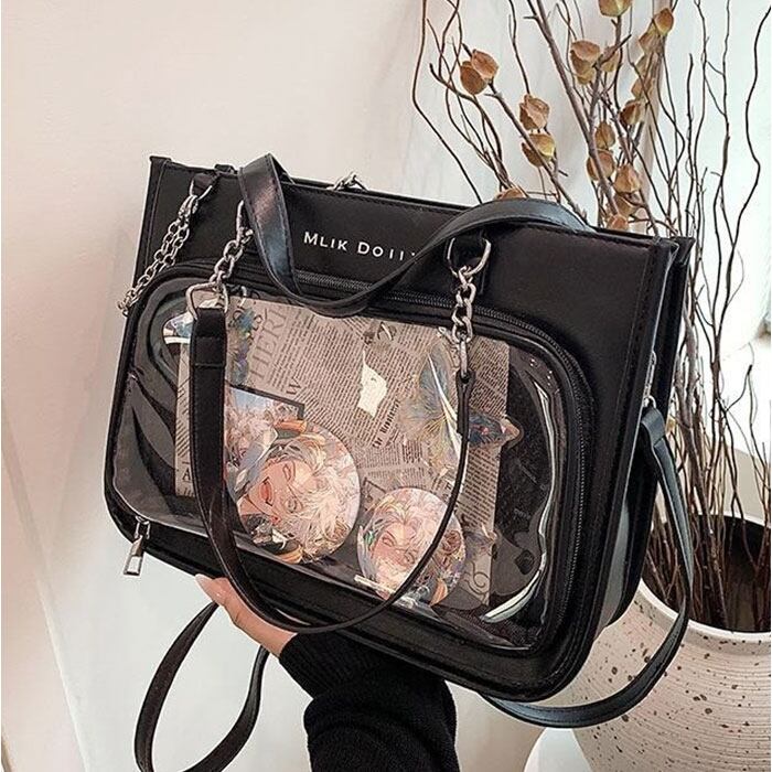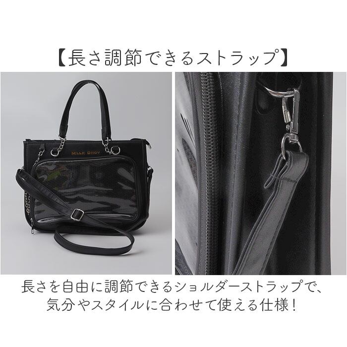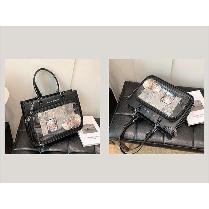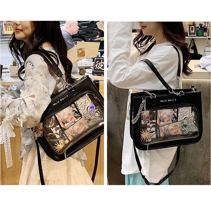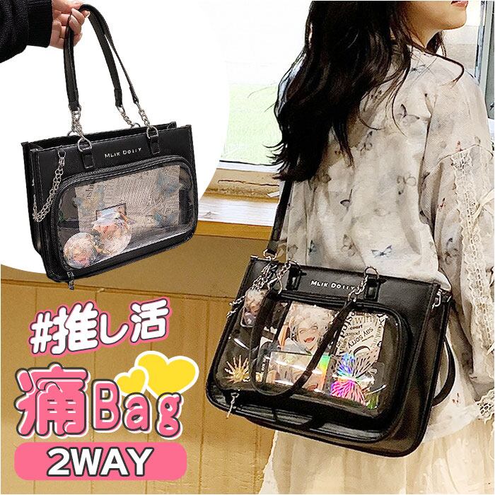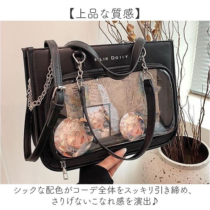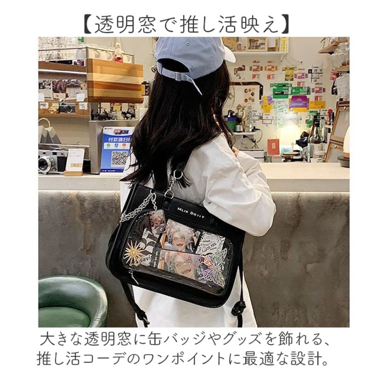【透明窓で推し活映え】 大きな透明窓に缶バッジやグッズを飾れる、推し活コーデのワンポイントに最適な設計。
