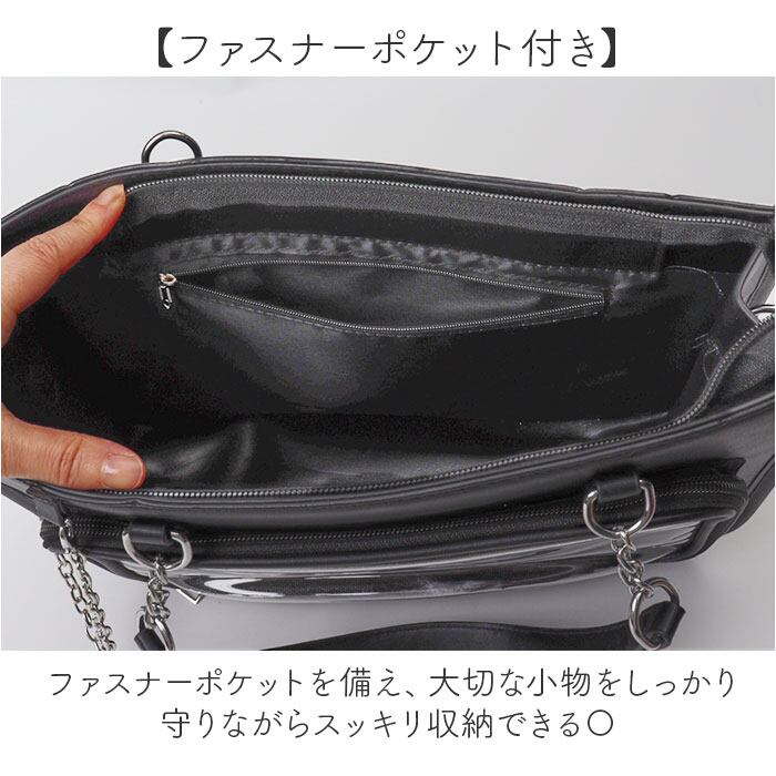 【ファスナーポケット付き】 ファスナーポケットを備え、大切な小物をしっかり守りながらスッキリ収納できる〇