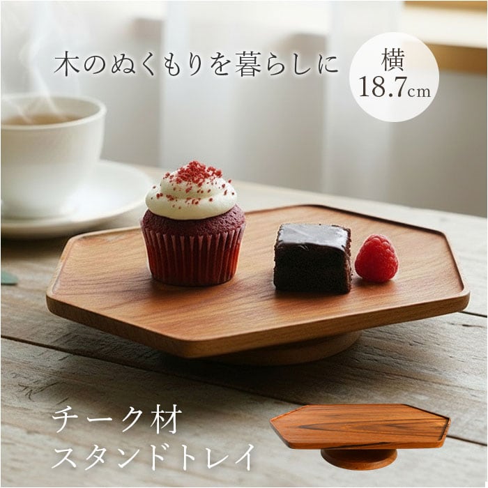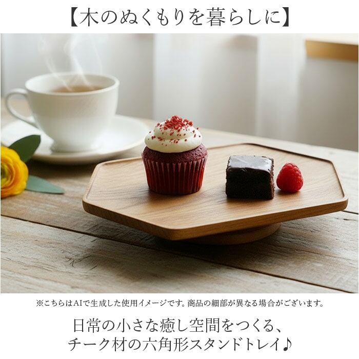 ・日常の小さな癒し空間をつくる、チーク材の六角形スタンドトレイ♪