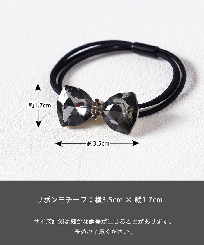 ・まるで陽の光を閉じ込めたような、透明感あふれる輝きが魅力の「ビジューリボンヘアゴム」。