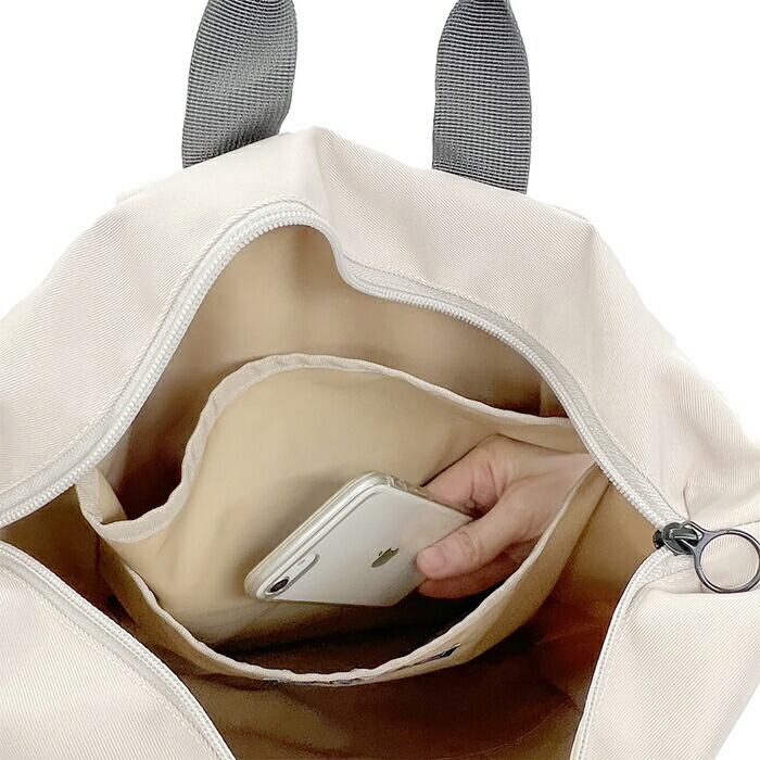 ・A4サイズが収納可能。口元のファスナーは、指をかけてスライドできる丸リングで開閉スムーズ。