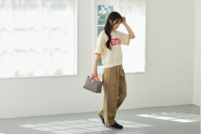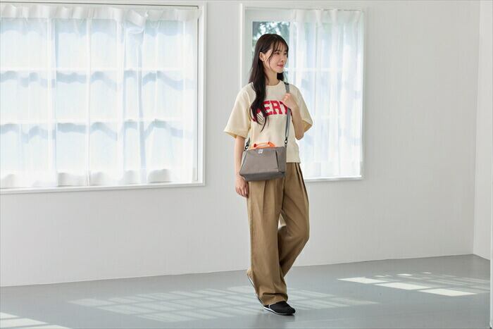 ・ちょっとそこまでの、身軽なお出かけに便利。スマホや長財布、A5ノートなどが収納可能。口元はファスナー開閉で、安心なつくりです。