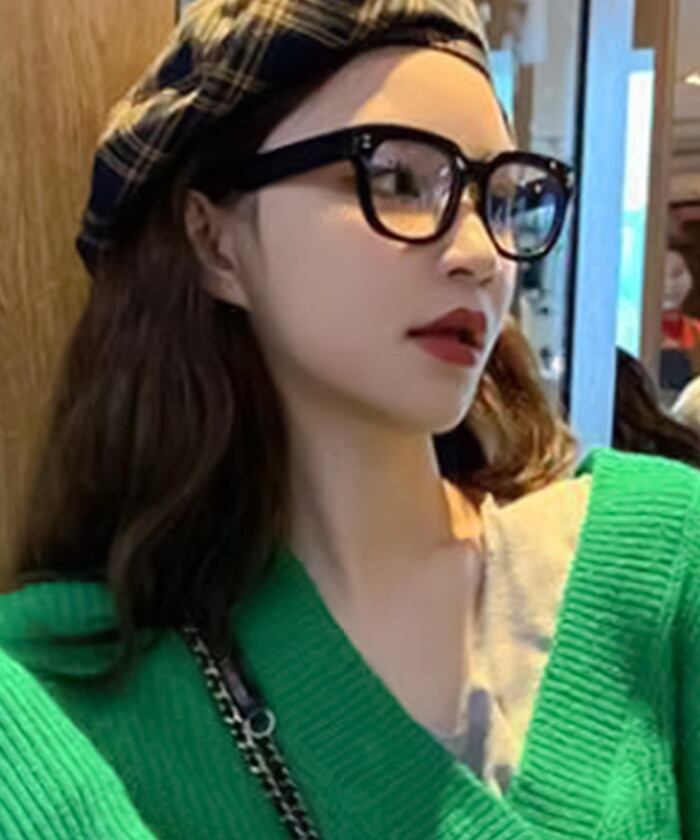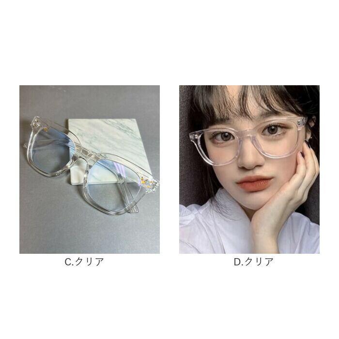 ・フレームのカラーで印象が変わるビックフレームのクリアレンズメガネ。