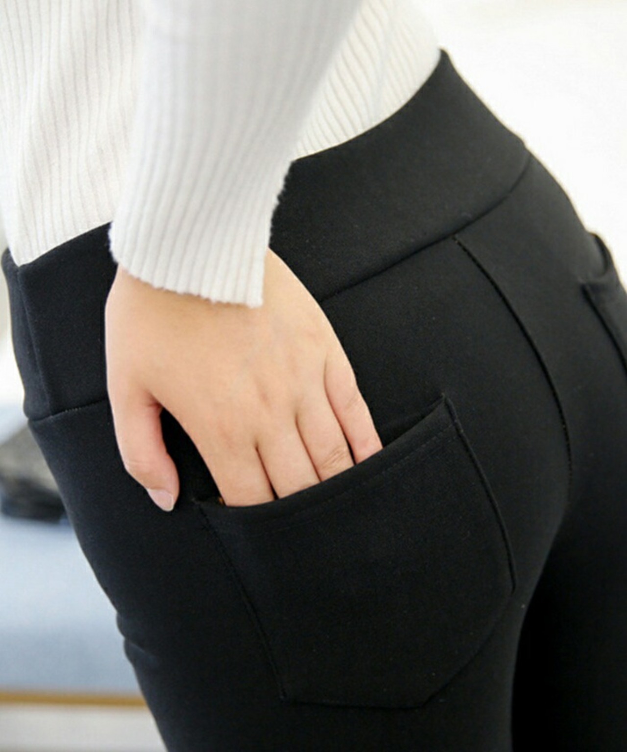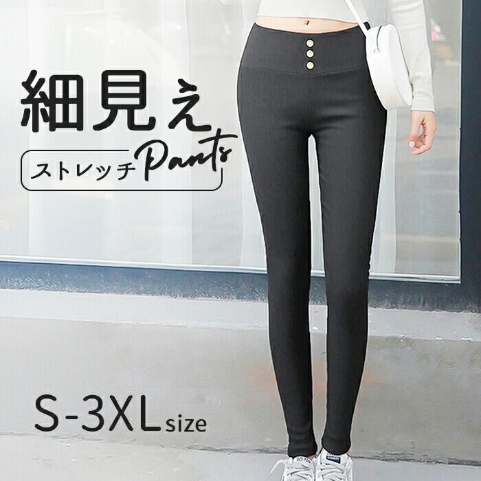 ウエストゴムフロントボタン3極細ストレッチ細見えスキニー