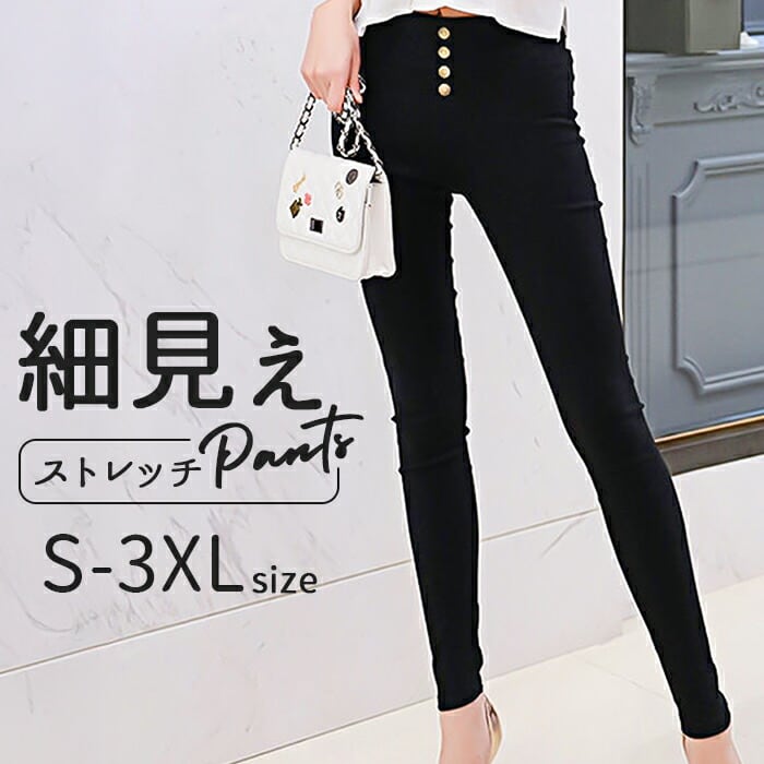 ストレッチスキニーボタン4極細レギンス細見えパンツ