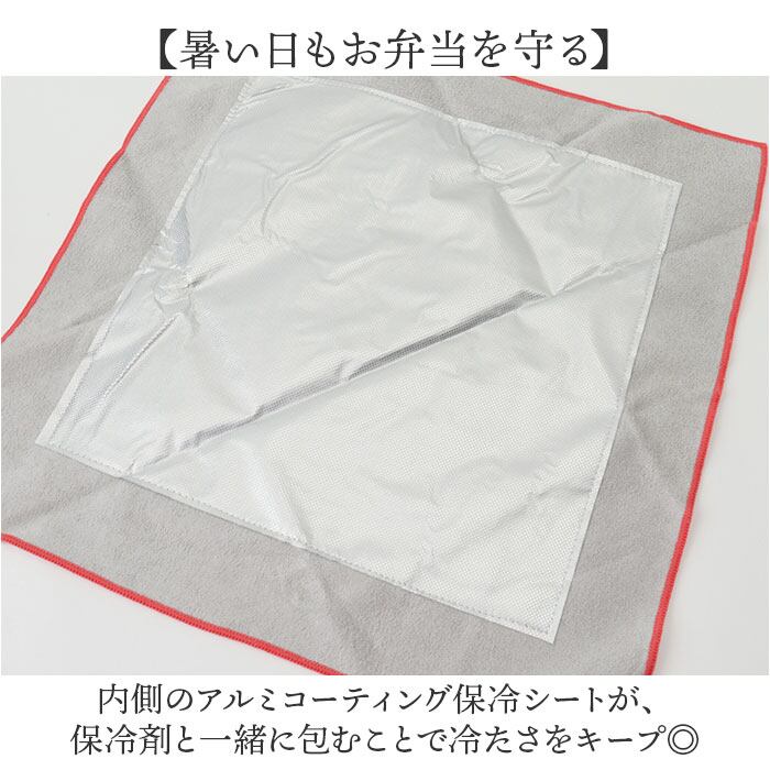 ・内側のアルミコーティング保冷シートが、保冷剤と一緒に包むことで冷たさをキープ◎