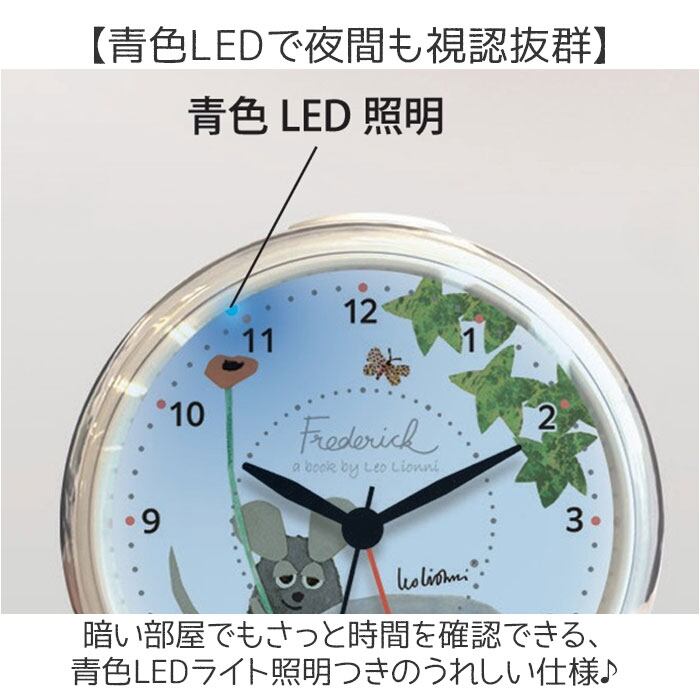 ・暗い部屋でもさっと時間を確認できる、青色LEDライト照明つきのうれしい仕様♪