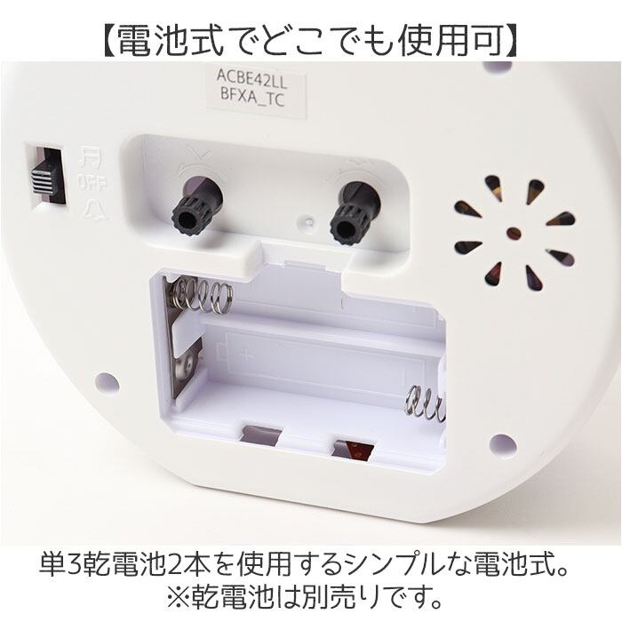 ・単3乾電池2本を使用するシンプルな電池式。※乾電池は別売りです。