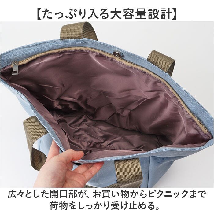 ・広々とした開口部が、お買い物からピクニックまで荷物をしっかり受け止める。