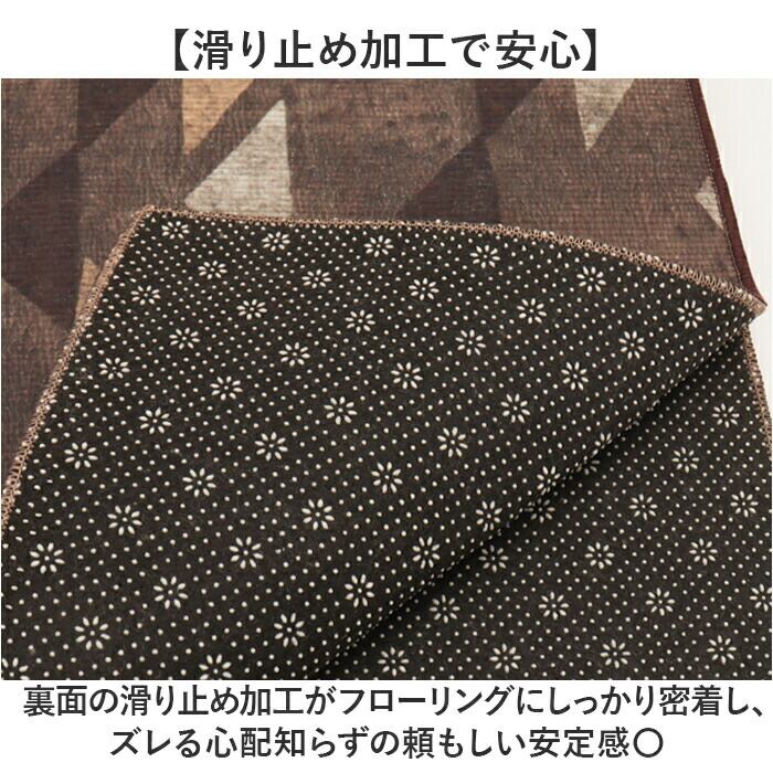 【滑り止め加工で安心】裏面の滑り止め加工がフローリングにしっかり密着し、ズレる心配知らずの頼もしい安定感〇