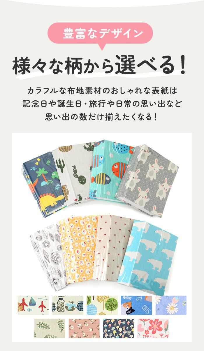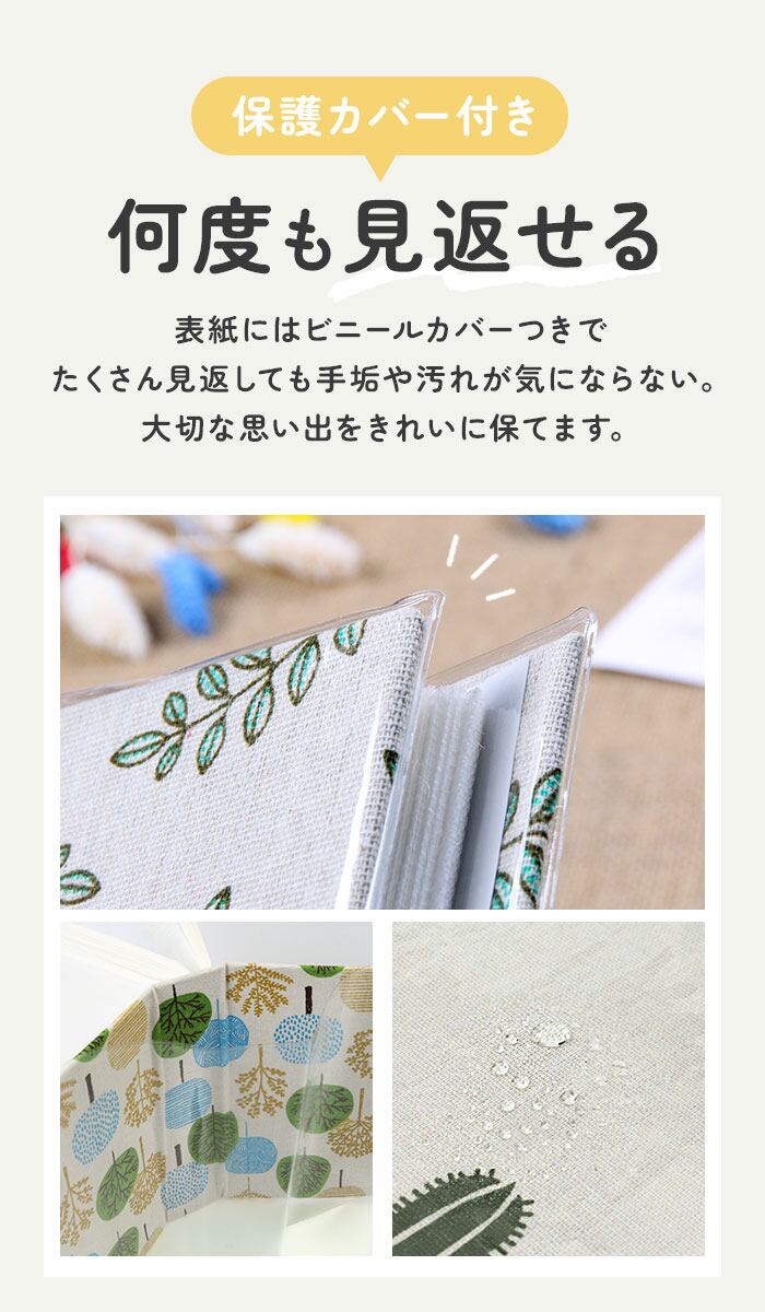 ・表紙には優しい印象のプリント生地を使用。さらに保護カバーも付いているので、気になる汚れからも守ってくれる。