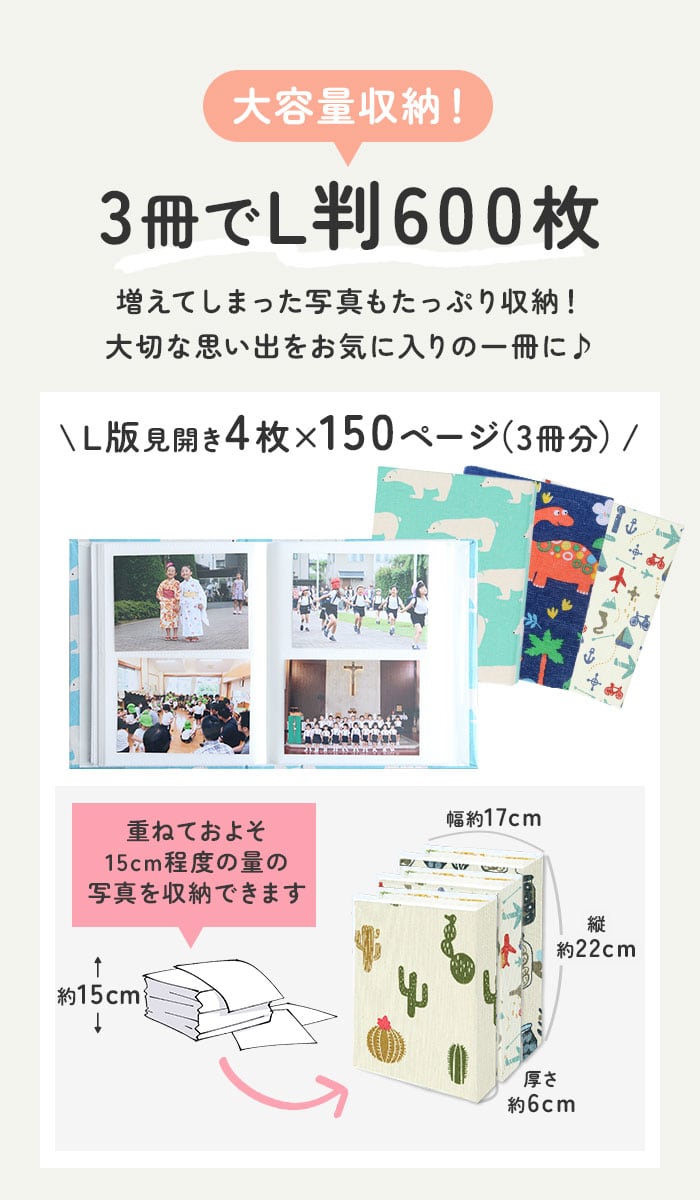 ※L判写真200枚収納可能。(アルバム1冊当たりの収納枚数です。)
