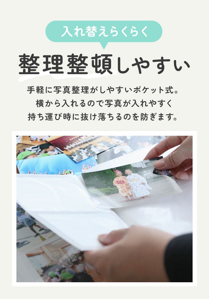 ・見開きで、L判写真が4枚収納可能。全50ページ。