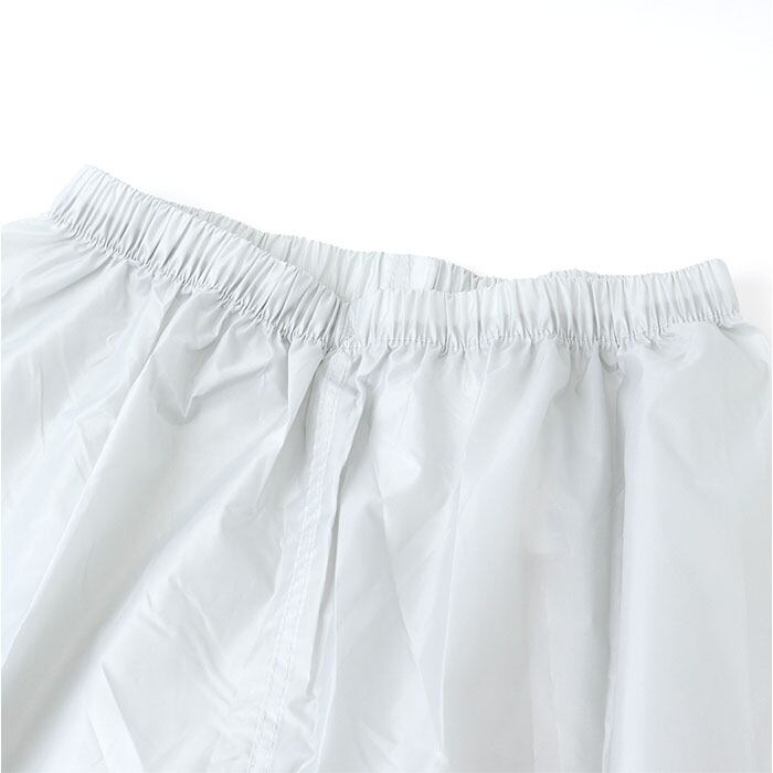 ・ジャケットとパンツのセットアップで頭から足首まで全身を隙間なくカバーする。