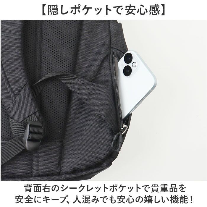 ・背面右のシークレットポケットで貴重品を安全にキープ、人混みでも安心の嬉しい機能!