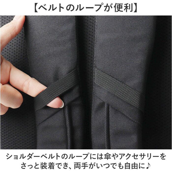 ・ショルダーベルトのループには傘やアクセサリーをさっと装着でき、両手がいつでも自由に♪