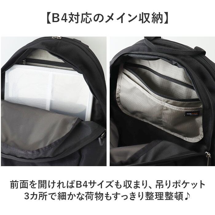 ・前面を開ければB4サイズも収まり、吊りポケット3カ所で細かな荷物もすっきり整理整頓♪