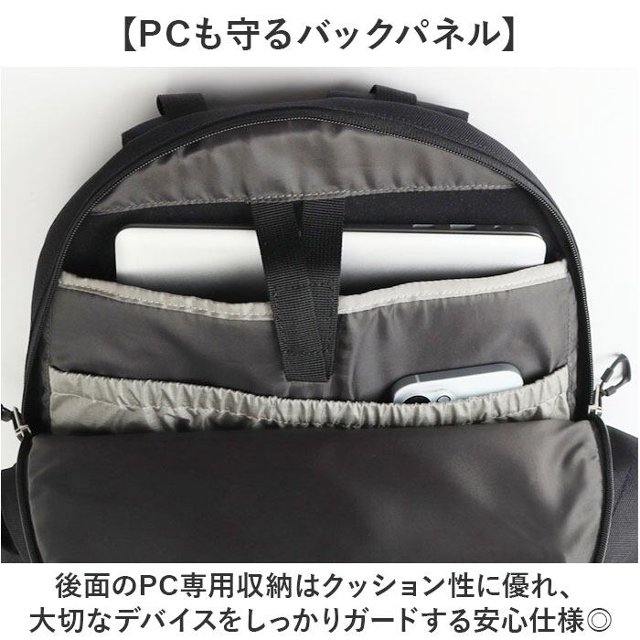 ・後面のPC専用収納はクッション性に優れ、大切なデバイスをしっかりガードする安心仕様◎
